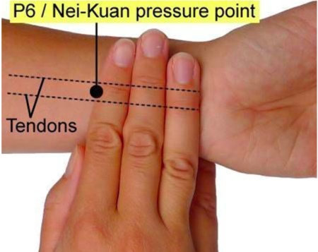The neyguan point, which is responsible for the work of the vestibular apparatus and the digestive organs, is located on the arm in the wrist area. It is called the pericardial point P6. With moderate exposure to it, nerve impulses are transmitted to the brain, which allows to eliminate an unpleasant and painful condition, normalize blood flow, restore a calm state.