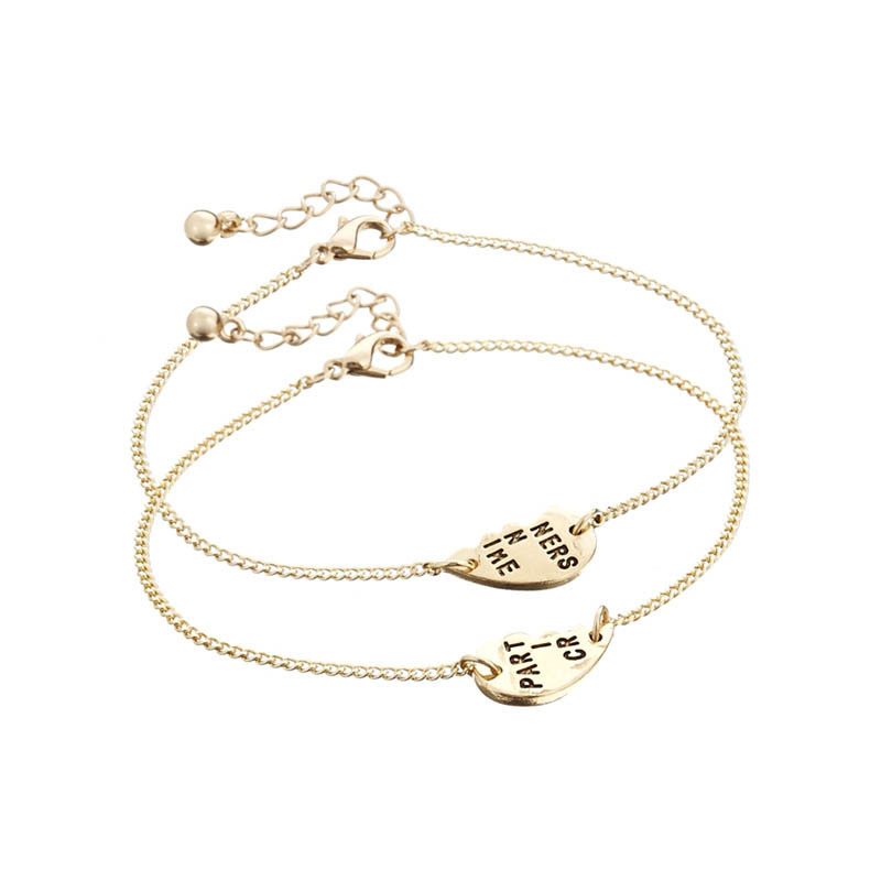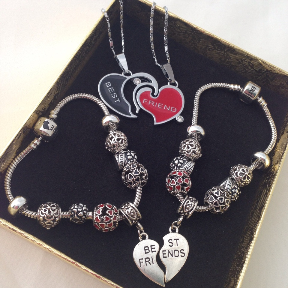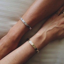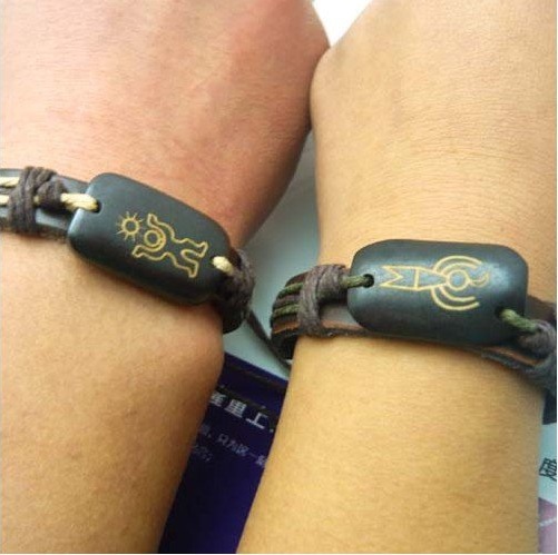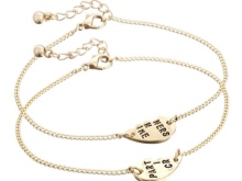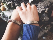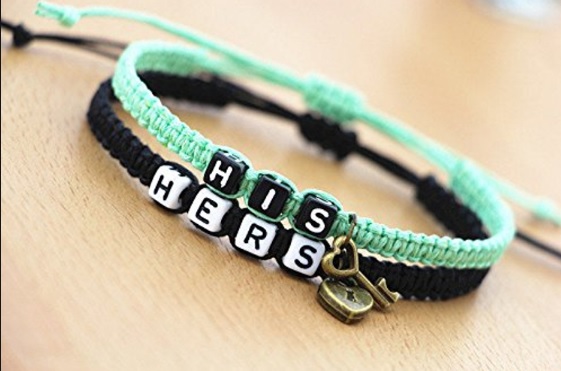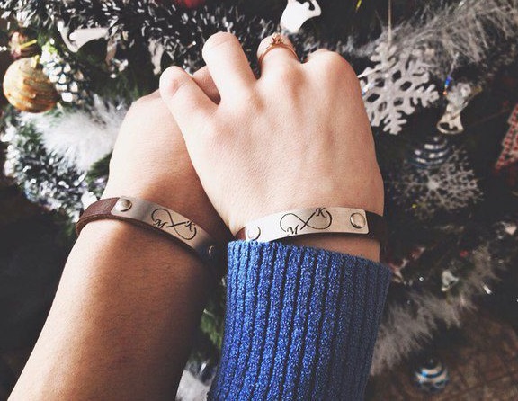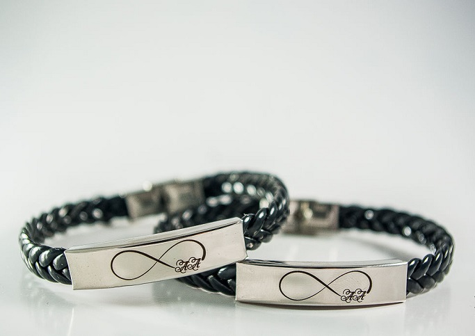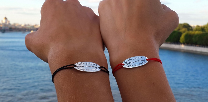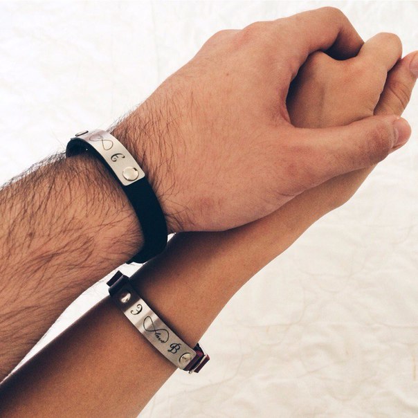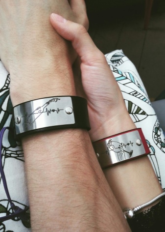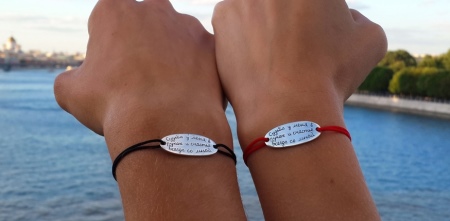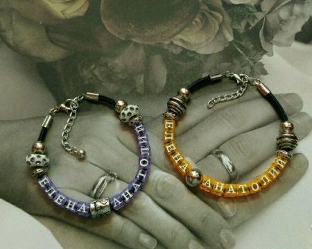 Bracelet inscriptions are another common way to make them paired. They are presented as engraving on metal or pattern on the plate. It can be either nominal, or the same or complementary. Among the most popular: together forever, love, I’m always with you, best friends.