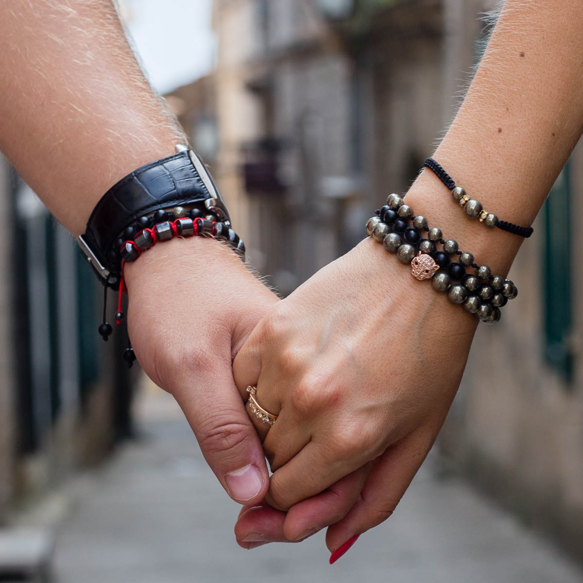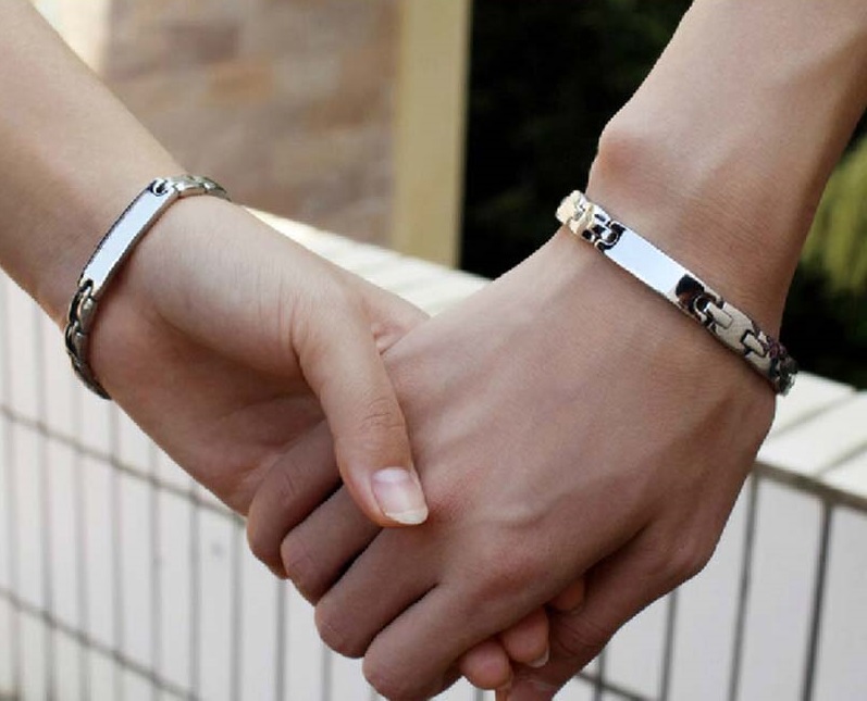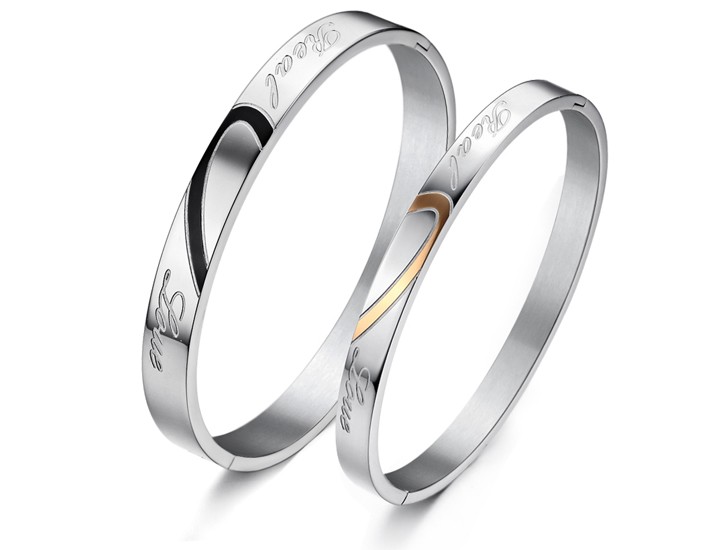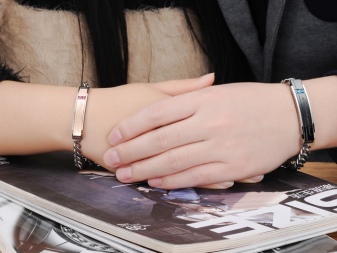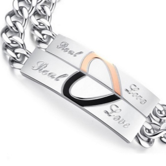 Bracelets made of precious metals - gold, silver, platinum - are more expensive than others, but they will last for a long time and can become, by their symbolic value, almost wedding rings. Most often, paired ornaments of them are concise in order to suit people with different preferences and status. No less common is hypoallergenic jewelry steel, as it has an affordable price.