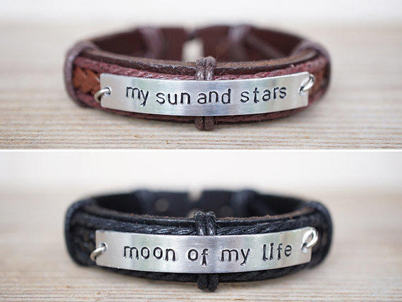 If the size of the product allows, then the famous quote from books and movies can become the inscription. For example, after the release of the series "Game of Thrones" appeared bracelets My sun and stars and Moon of my life.