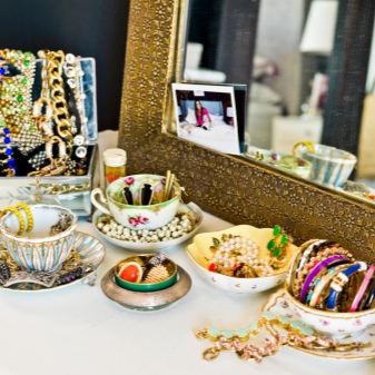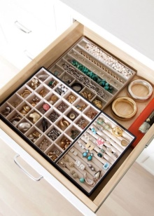 In addition, there are many organizers for jewelry and various trifles. For example, stylish desktop dressers, small boxes which can be used to store bracelets.
