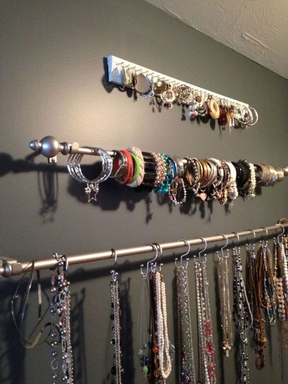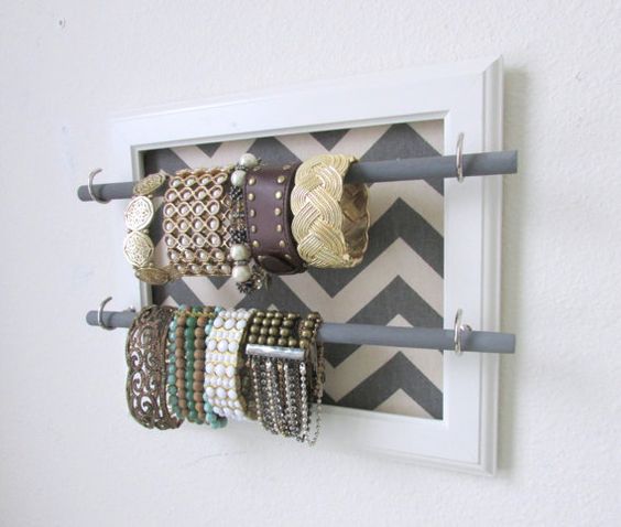 For example, ordinary wooden hangers with attached hooks can be an excellent option for storing bracelets in a closet, if there are no other specially designated places.