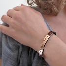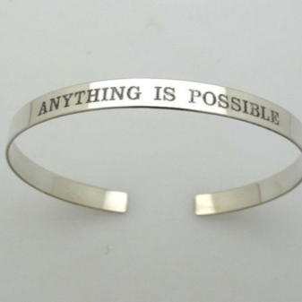 Bracelets with engraving - universal jewelry. They can be worn, choosing for themselves virtually any image. It all depends on the material. Girls who like the extravagant styles of boho type, stylists recommend to buy textile or steel models. Wooden, bone, combined bracelets will look good, and you can decorate them additionally with bird feathers or symbolic figures.