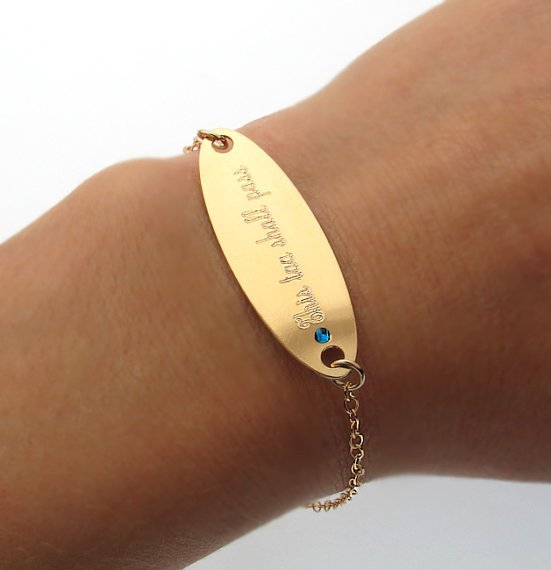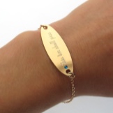 Famous jewelry brands also do not bypass bracelets with inscriptions. In new collections you can often find awesome models of precious and semi-precious stones, as well as pearls. It looks very stylish combination of black and white pearls, equipped with a plate of stainless steel. If pearls are not yours, you can easily find beautiful products with malachite, amethyst, and aquamarine. Of the most precious - engraved jewelry with diamonds, sapphires, emeralds and rubies.