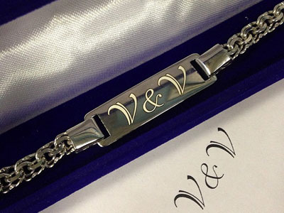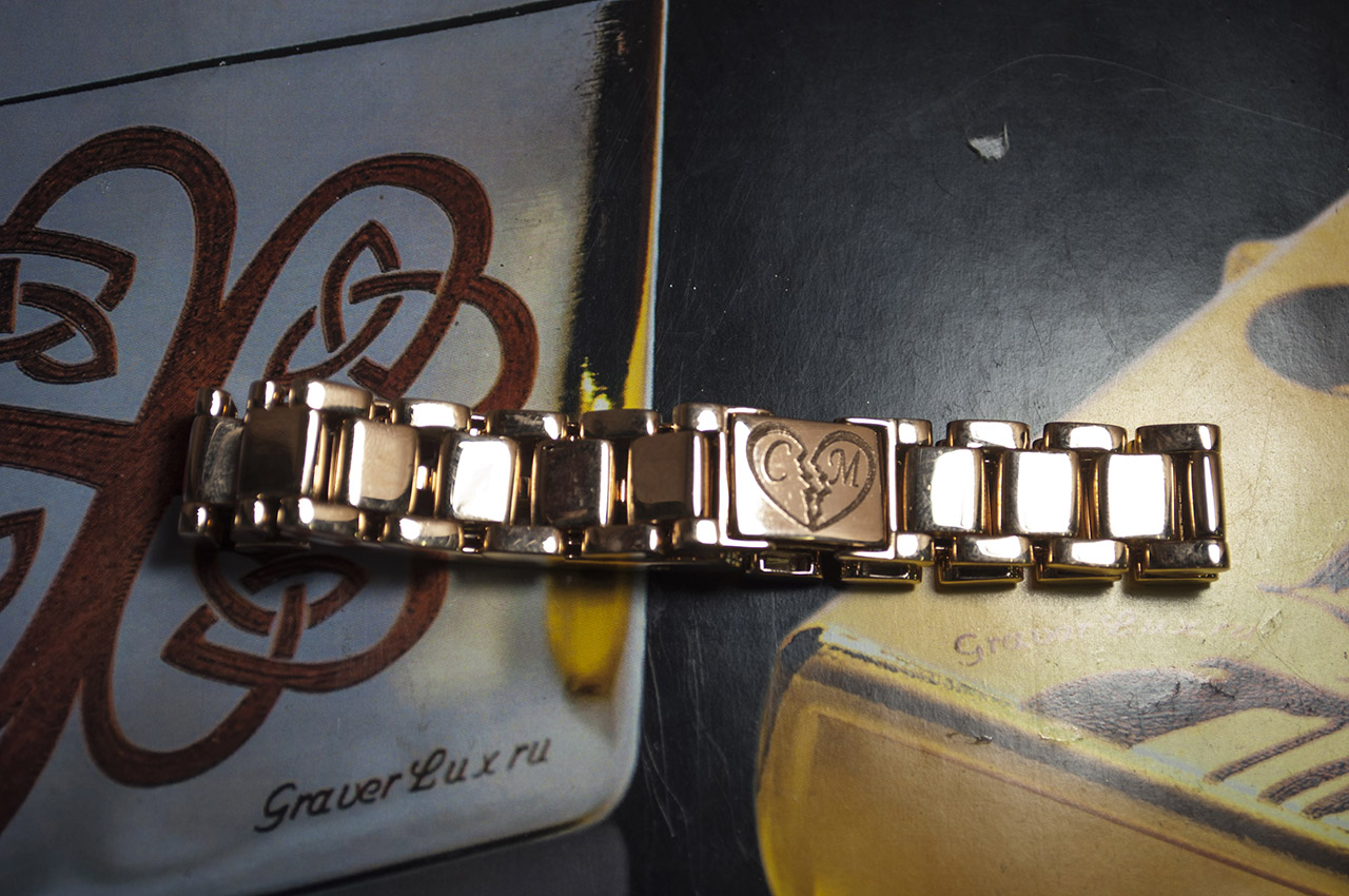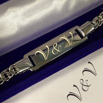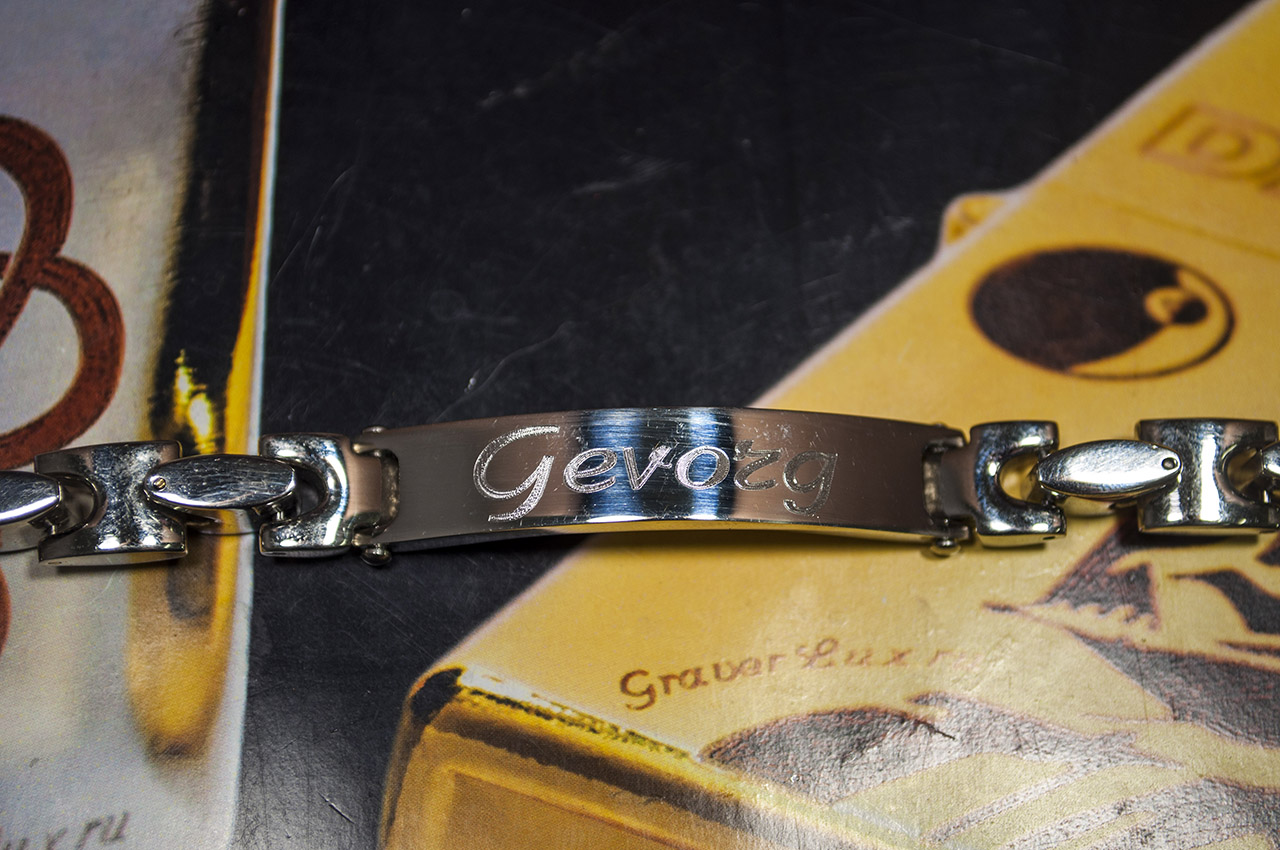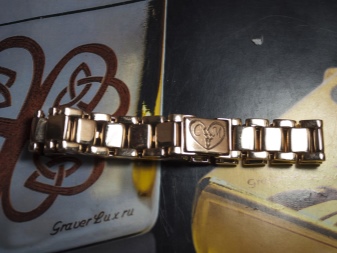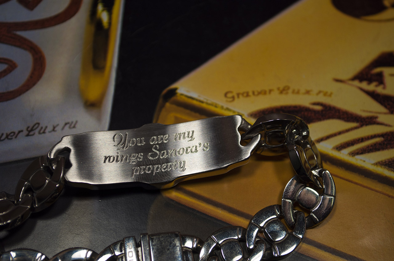 This method is widely known in the jewelry and engraving. It is performed by the same machine, only now - with a diamond coating. From this the inscription is made more resistant to all external vibrations. As a result of the process, you get not only high-quality, but also a very attractive bracelet. Among the minuses, as in the mechanical method - the inability to work on other surfaces, except smooth.