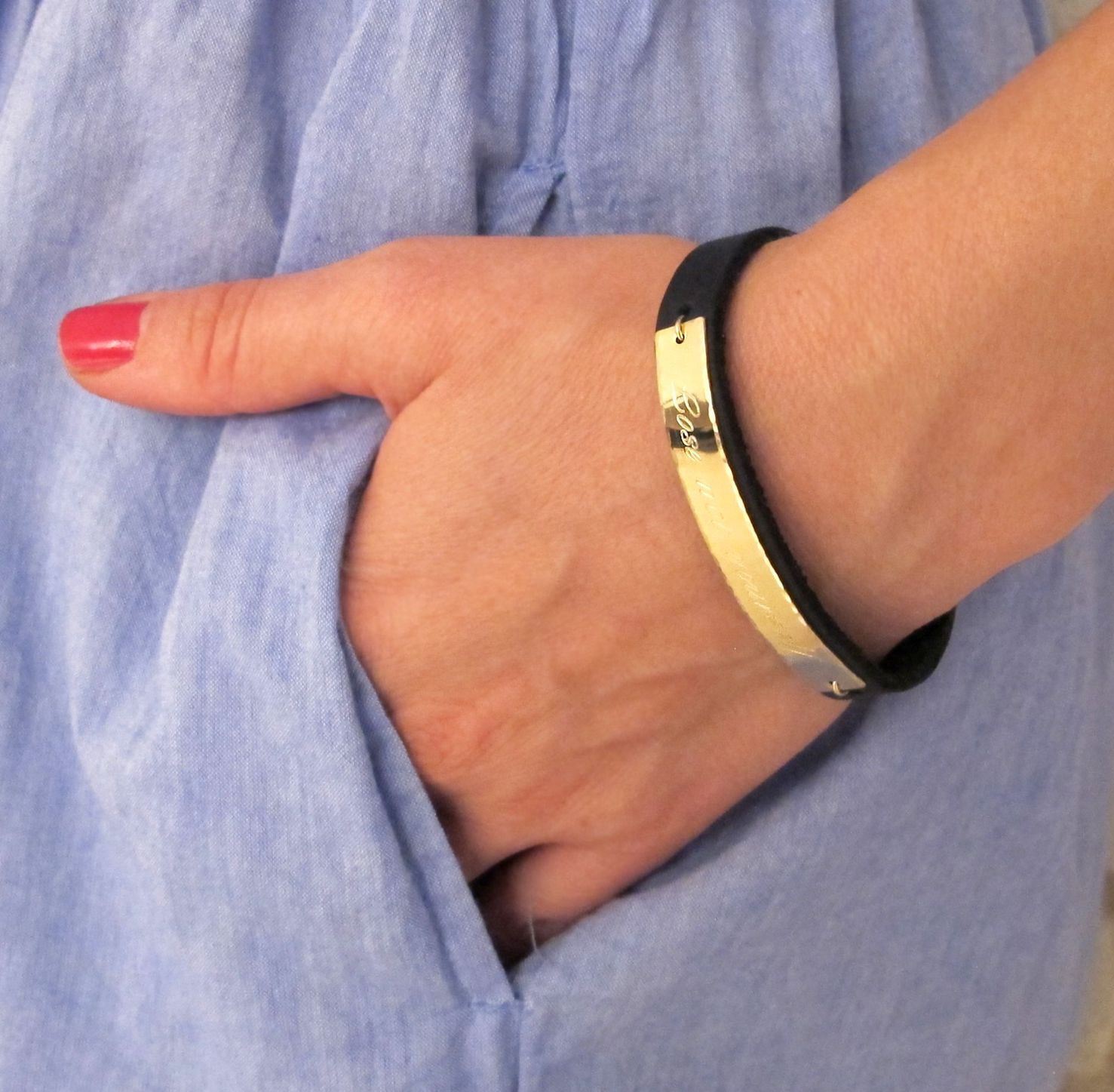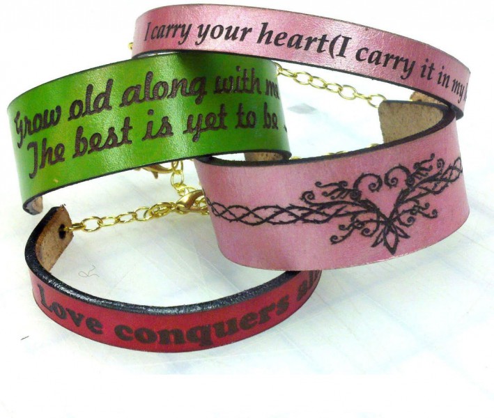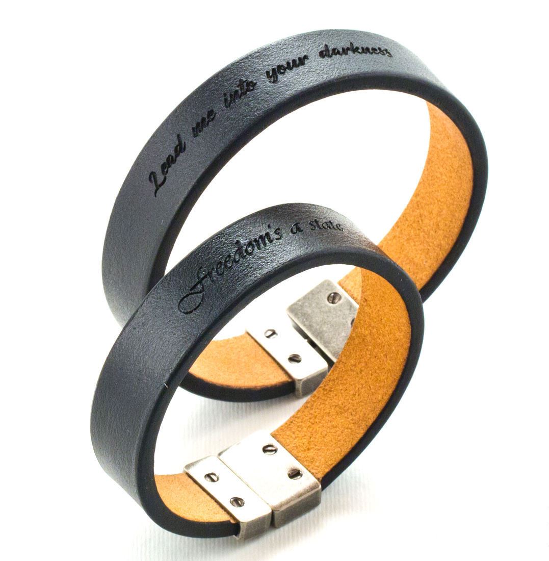 You can put an interesting inscription on the bracelet from any material. It does not matter if you choose a precious metal, leather or steel - each of these models is easy to engrave. Moreover, experienced craftsmen know how much personal time is valued today. Even the most difficult process will take on average a day, so you get your jewelry back quickly and in a completely different form.