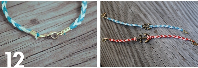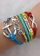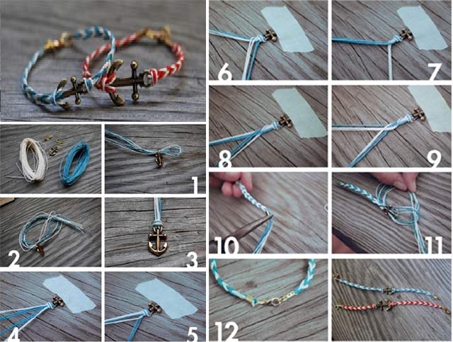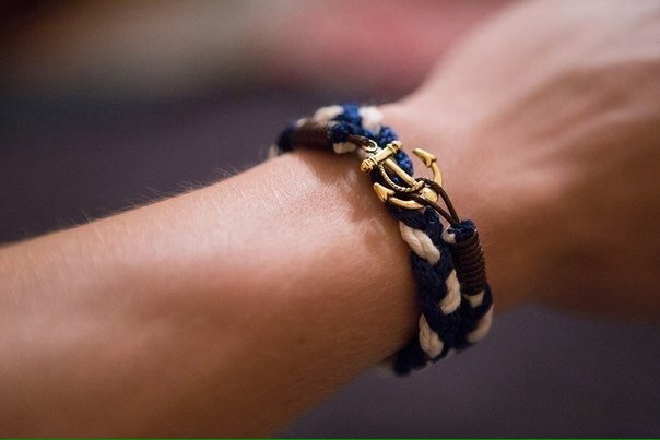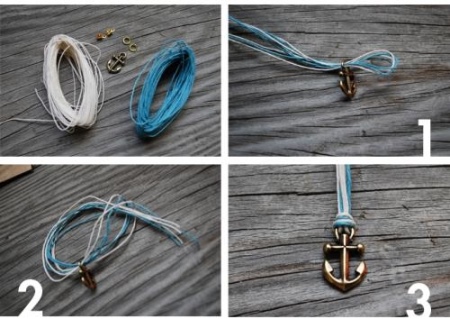 If you could not find a suitable option in the store, make the perfect jewelry by yourself. To do this, you will need a small pendant in the form of an anchor, clasps and durable threads of different colors. Such components can be found in stores for creativity.