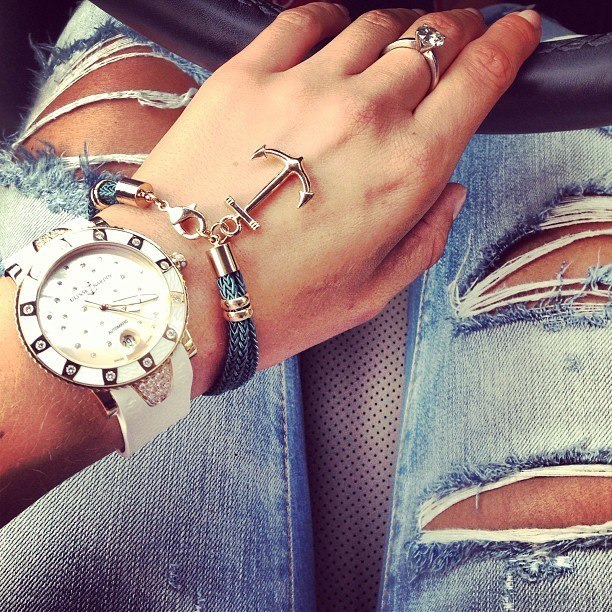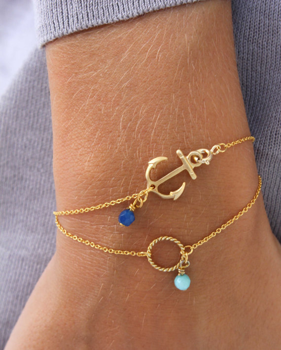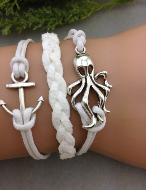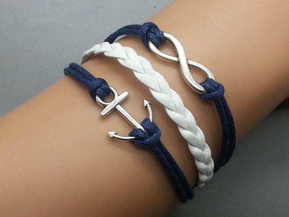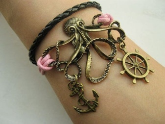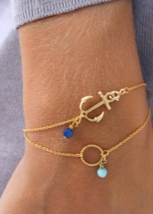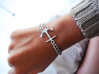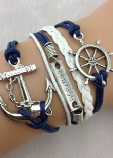 Accessories in the marine style can be called universal. They look great with both casual and evening wear.Anchor bracelets are completely unprincipled, and can be combined with other jewelry made from various materials.