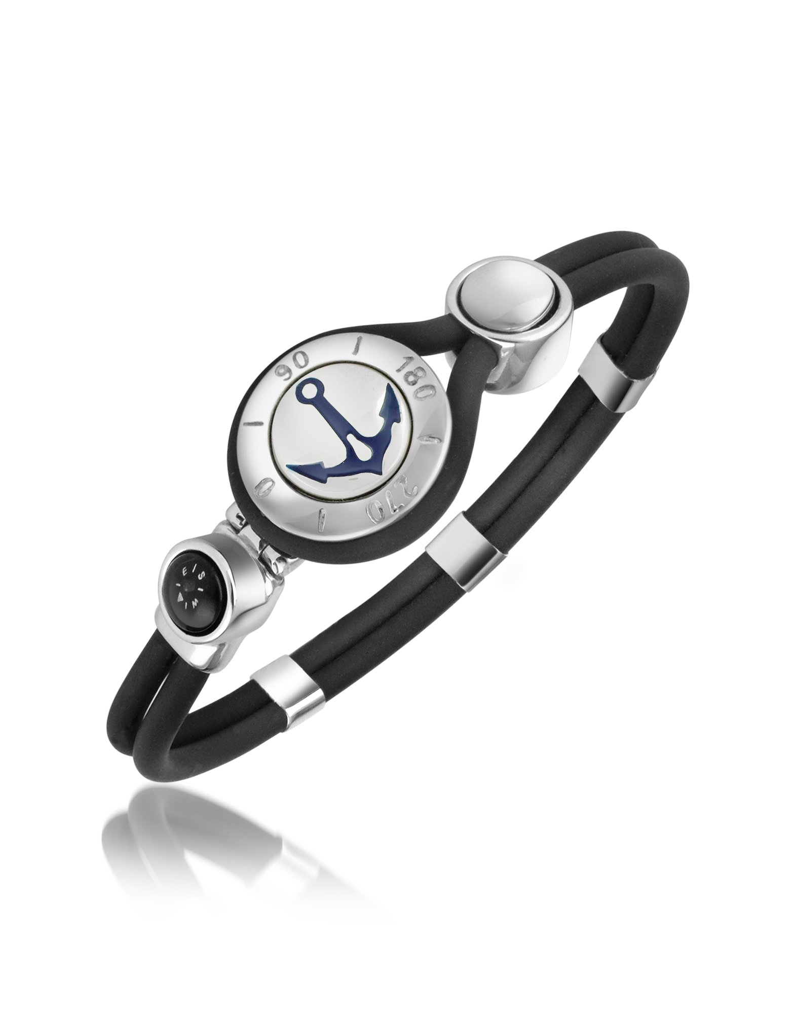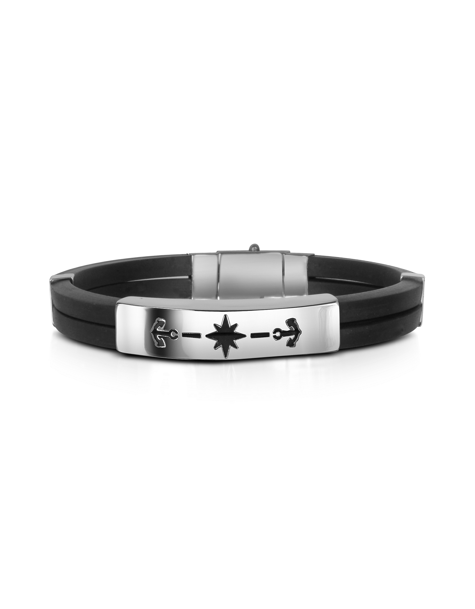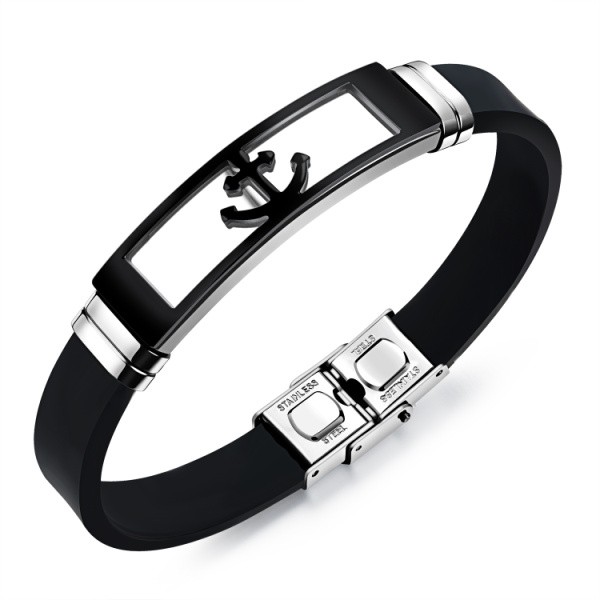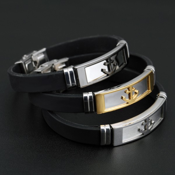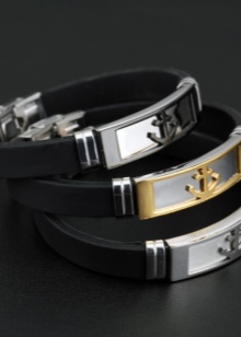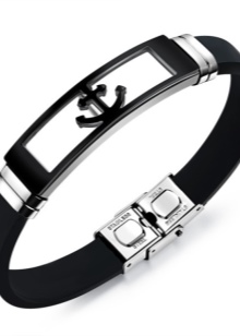 A rubber bracelet with a polished plate with a three-dimensional image of an anchor will look especially original and effective on the ladies' wrist.
