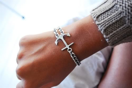 At the peak of popularity are charming bracelets, decorated with interesting pendants in the form of an anchor. They look great on a ladies hand.
