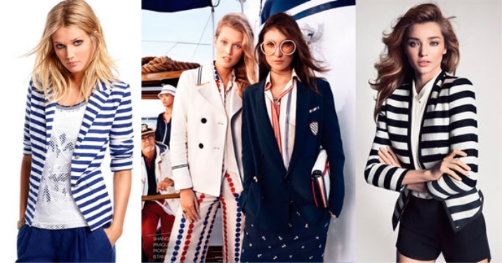 Every year at fashion shows, we can observe models that show stylish outfits with stripes, similar to a vest, or fashionable trousers of heavenly color, complemented by rope knots. This season, marine notes are no less relevant.