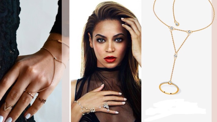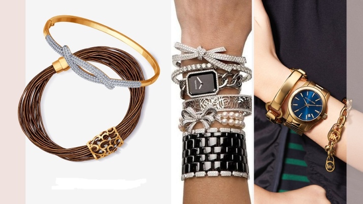 Similar products are made of various alloys of metals. Modern fashionistas face a chic selection of attractive models, complemented by precious and semiprecious pebbles, placed around the perimeter of the bracelet.