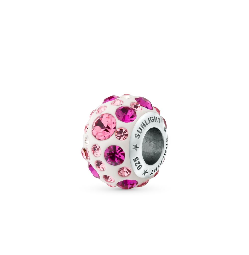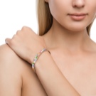 The bracelet from "Sunlight" is filled with a variety of charms. The assortment of the brand includes classic round beads charms and pendants with precious stone inlays. Elements that combine a neutral material (for example, silver) with bright colors — red or green — are very popular now.