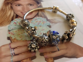 Each girl in her own way uses bracelets. Someone like to put only one or two charm on the bracelet, some strung the maximum number of elements. It all depends solely on your taste and convenience. When filling the bracelet, it should be borne in mind that its diameter with charms will slightly decrease, therefore it is believed that the distance between the wrist and the bracelet base should be equal to the thickness of two fingers.