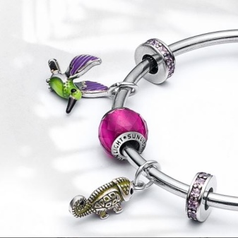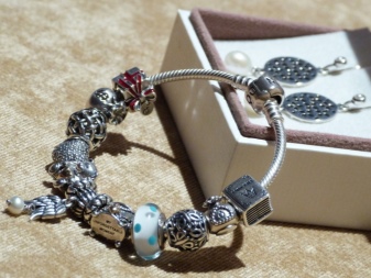 Charms are distinguished by a variety: decorative figures from silver, enamel round charms with topazes or cubic zirconias. In addition, there are elements decorated with sapphires, amethysts, agates.