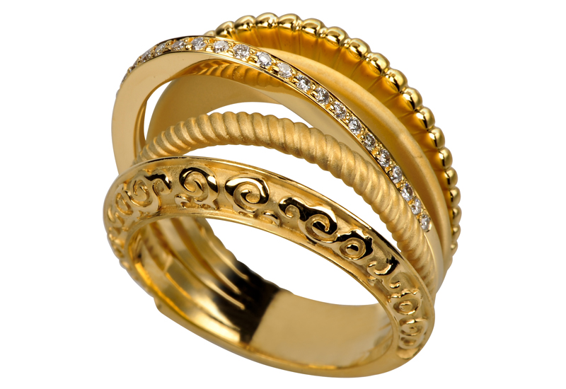 There are also complex rings, as if imitating a "week." Several rings are connected in one product, although in reality it constitutes a single, integral piece of jewelry. It is not so universal, because it does not disassemble into separate rings, but this option looks no less attractive and beautiful.