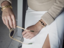 Bracelets with patterns and elements similar to the print of the dress and the handbag design look extraordinary. Due to the carpal jewelry it is very easy to correct the visual proportions of your body.