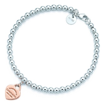 The most famous bracelet of the Return to Tiffany series is made of 4 mm beads and a silver pendant with enamel. The jewelry was first made in 1969 and gained unprecedented popularity. An elegant carpal decoration with a simple design (adjacent beads) allows the bracelet to always remain modern and relevant.