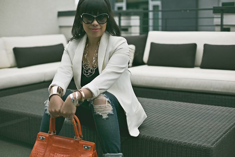 If you like to dress brightly enough, give preference to contrasts. A monochrome light-colored tunic will look great in an ensemble with a multi-tiered bracelet.