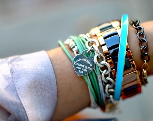 Despite all the beauty of Tiffany jewelry, there should not be a lot of them. It is better to follow the rule of 3 accessories: bracelet, earrings and necklace, or bracelet, earrings and ring. The brighter and more decoration for the wrist, the sooner your clothes should be.