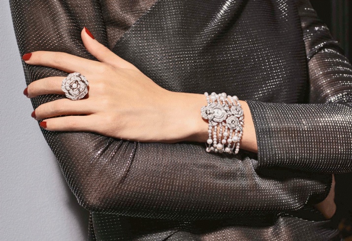 Ornaments on hand should be in the same color tone with your clothes or contrast with it. For example, accessories with red thread and white gold models with sapphires or diamonds will suit a strict dress of dark colors.