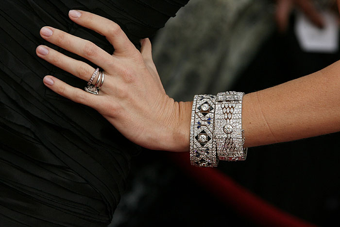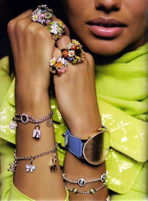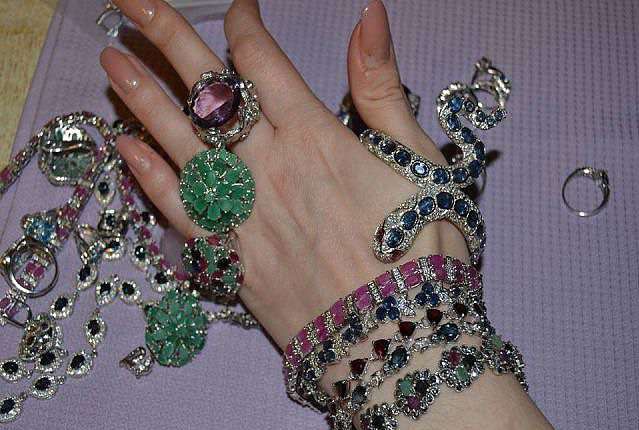Luxurious jewelry with precious and semi-precious stones look spectacular in many ladies' images.
