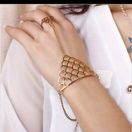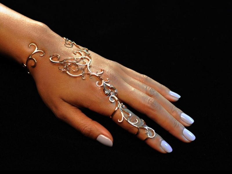 For a city walk, a date or friendly gatherings, choose a gentle and elegant bow. A spacious white shirt or tunic will be beautifully combined with an unusual bracelet. The fine openwork model connecting to a ring on a finger will become fine option.