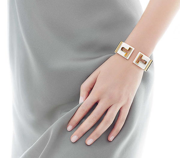 The Tiffany brand is a true legend in the world of high fashion. The manufacturer produces discreet concise products, striking in their beauty. The wide white gold bracelets decorated with diamonds look great. Among the new collections a worthy place is occupied by models with links in the shape of a ball, as well as double versions with pendants.