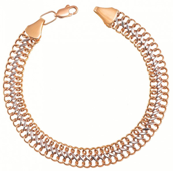 Rose gold is well suited for young girls. It is very refreshing and looks gentle, especially in combination with pearls and light precious stones. Bracelets of this material can rightly be called "modern classics."