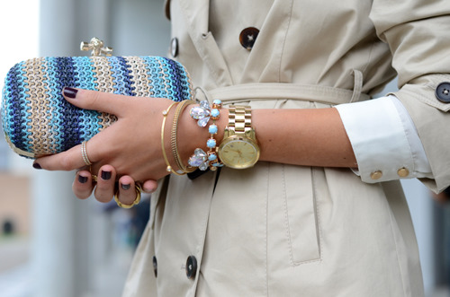 Going to a secular party, think about what handbag or clutch you will take. If you are right handed, you will definitely keep the accessory on the right. You should wear a bracelet on the same hand, it will look very appropriate and elegant.