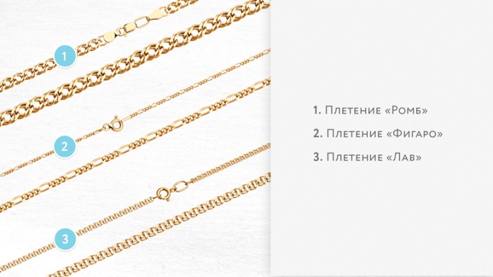 "Rhombus" is a kind of weaving, where all the ringlets are diamond-shaped. Jewelry of this type can be refined, if the “Rhomb” is single, or large, with double or triple viscous. Weaving "Figaro" - this is inconsistency.At first glance, the links are located chaotically, but when considering it becomes clear that the jeweler's idea is perfect.