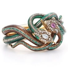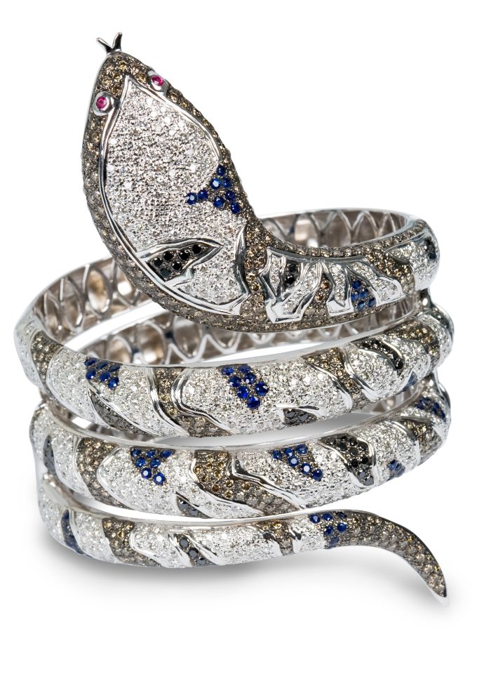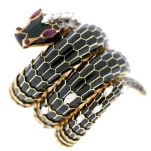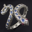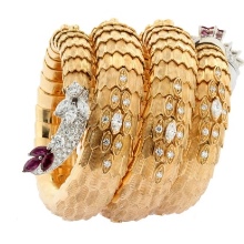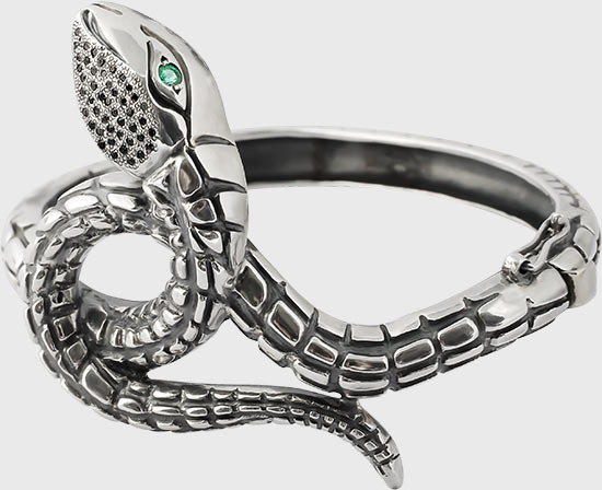 A separate line of snake bracelets – products inlaid with precious stones. In ancient times, these decorations were an attribute of luxury and refinement, available only to the elect. The stones convey the beauty and majesty of the depicted animal.