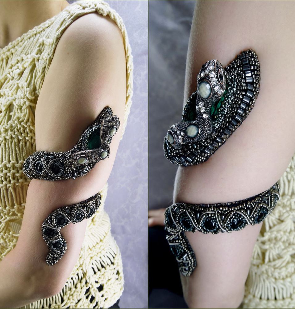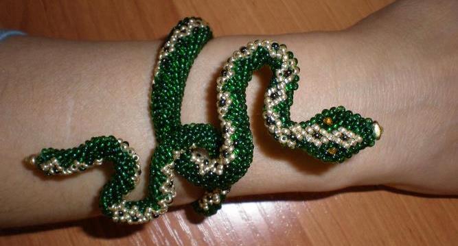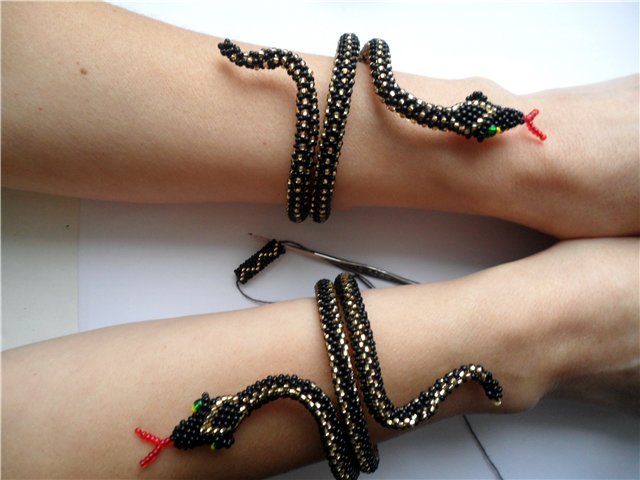 A few thousand years ago, people made ornaments in the form of a snake. Many artists portrayed them in their works, singing the power and beauty of the snake. In the Middle Ages, such items were worn as amulets, and were made of gold - for rich people, or made of leather - for commoners. And some even performed from the real spine of the snake. However, this technology still exists.