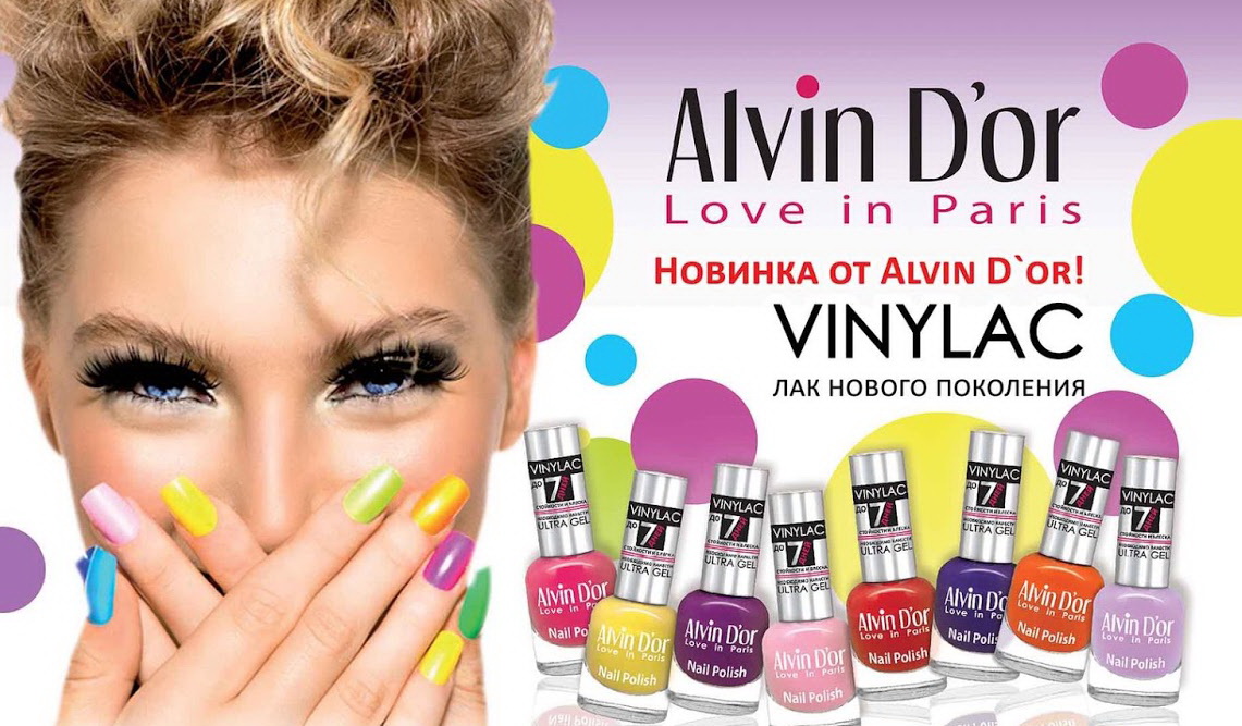 - Gained great popularity Vinylac from Alvin D'or. This is a novelty in the world of nail art, a means of a new generation. It is applied very easily, does not require the use of special lamps for drying, does not contain toxic components. This varnish is very resistant, it can be applied without filing the nail plate and applying a base layer.