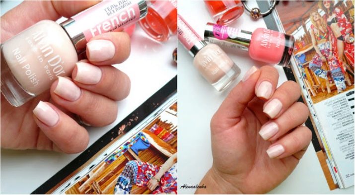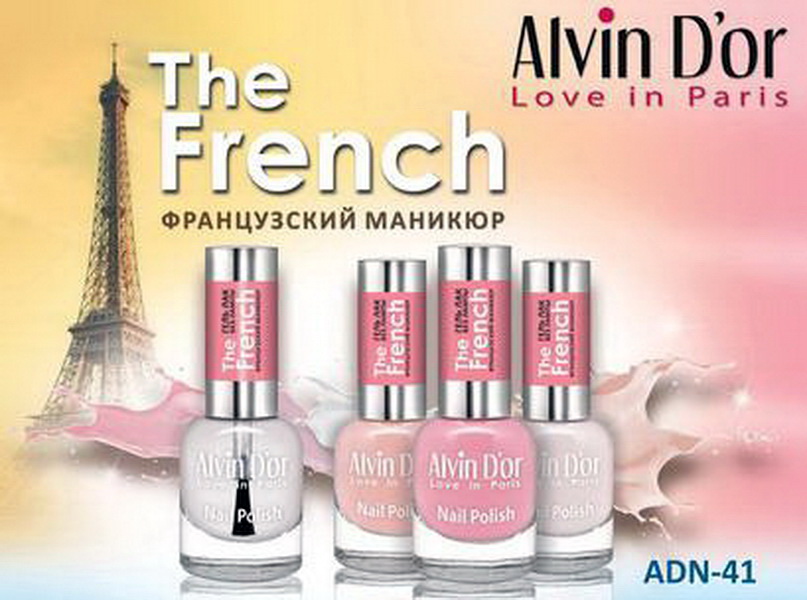 - Lovers of the classical style should buy lacquers of the French Manicure series ADN-41. In this palette gentle pastel colors that are selected for this type of manicure. The varnish is applied very easily. Means does not demand long drying. There are no harmful substances in the composition.