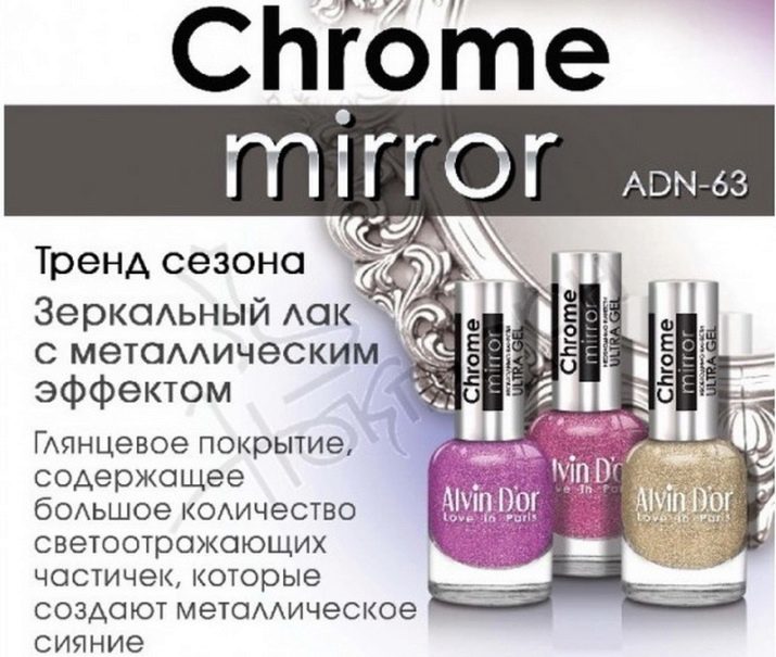 - Nail art from the collection Chrome mirror ADN-63, definitely please ladies. Due to the presence of reflective particles in its composition, it looks great on the nails, delighting with its mirror-metallic luster.