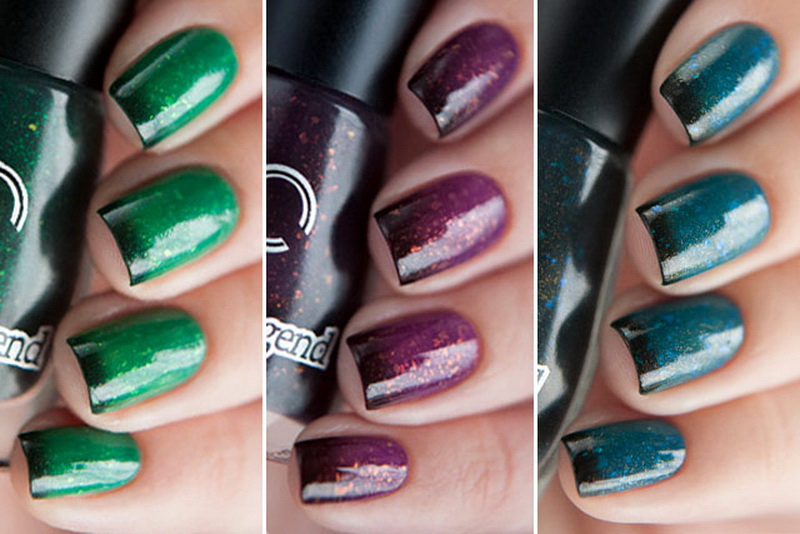 This collection consists of only three varnishes. They are applied in the usual way. After drying, the coating looks unattractive, so you need to apply a top layer or a fixer on top. The result is incredible - the shimmer and mica in the MortalKombat begin to play with all possible colors, shimmer and sparkle.