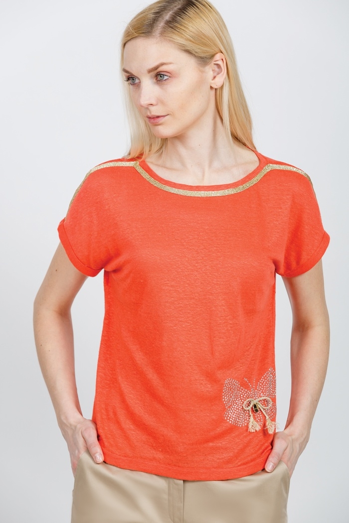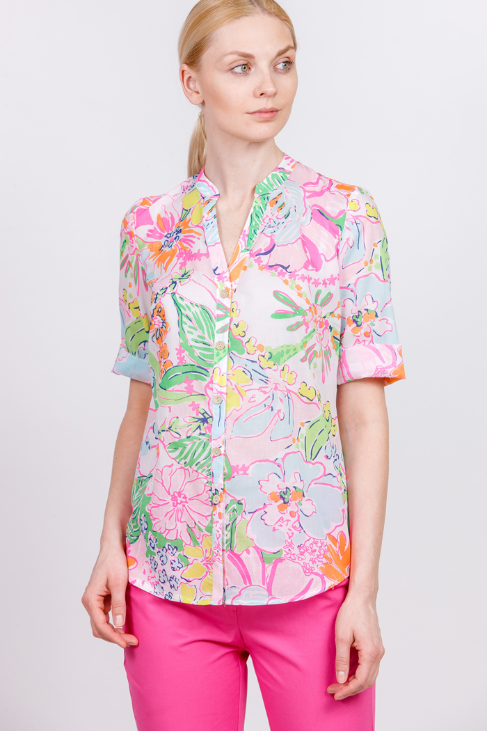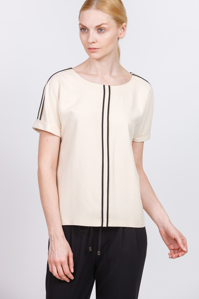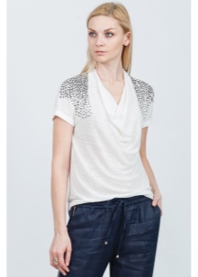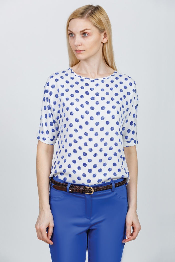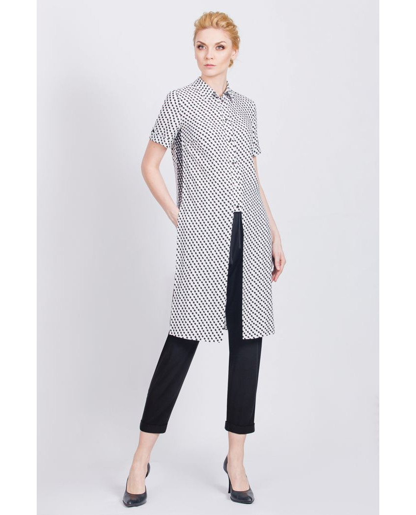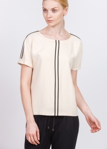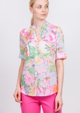 The company presents to everyone attention a blouse with short sleeves and three-quarter sleeves. They are made of fine fabric in beige tones and will look great with classic trousers. In the new season, you can see blouses with unusual and bright ornament.