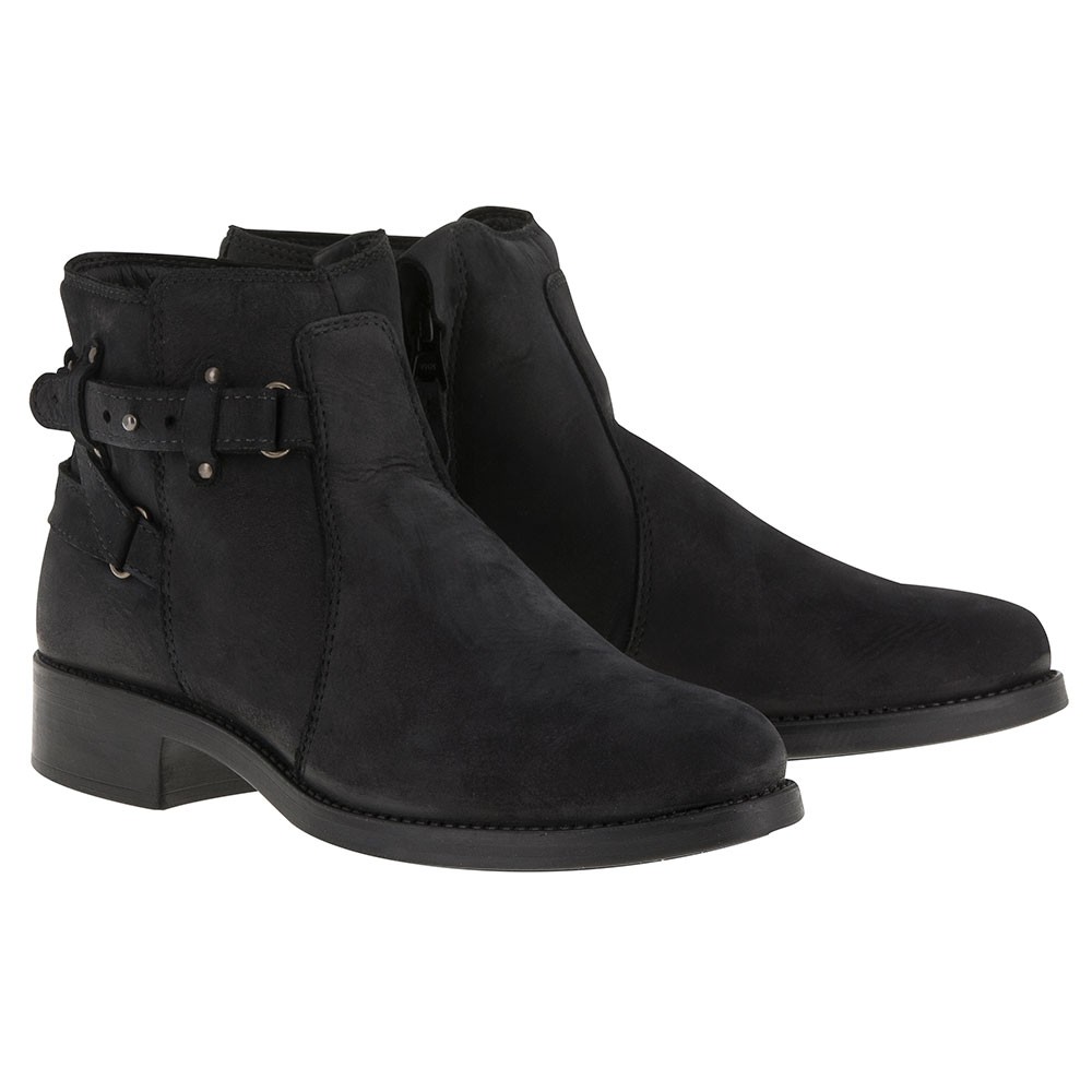 The female model Stella Kerry is perfectly combined with both specialized motorcycle clothing and casual clothing. The laconic design of nubuck shoes makes them a versatile piece of clothing.