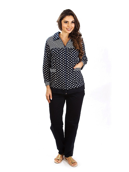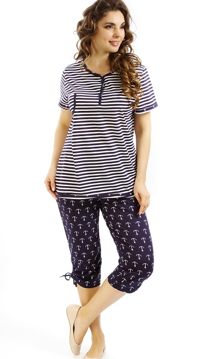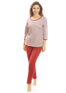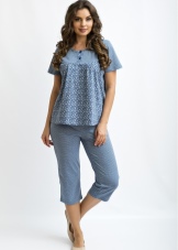 Home costumes are sets of blouses and shorts, breeches or trousers. Both elements of the costume are performed in a single color scheme, they perfectly fit the body, do not hold down movements and give comfort.