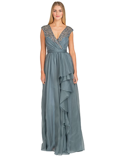 In the year Badgley Mischka brand produces two stunning collection of evening dresses. They include extremely feminine models, the distinctive features of which are a simple silhouette and delicate decorative details.
