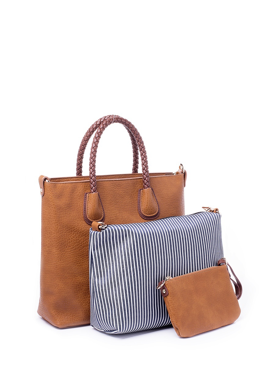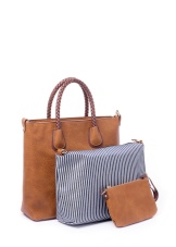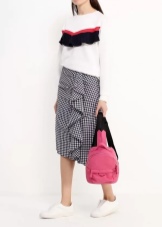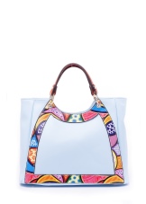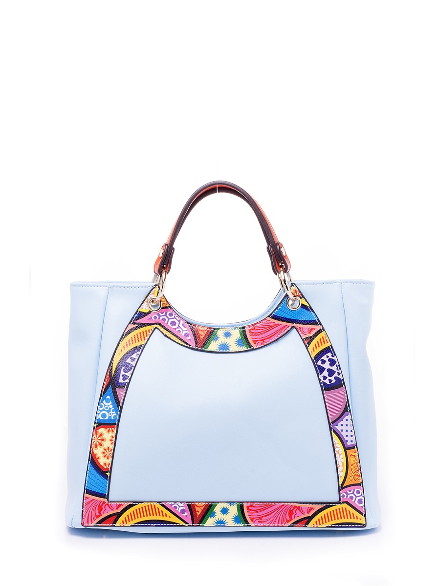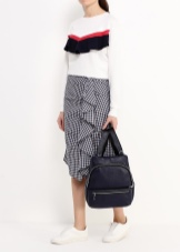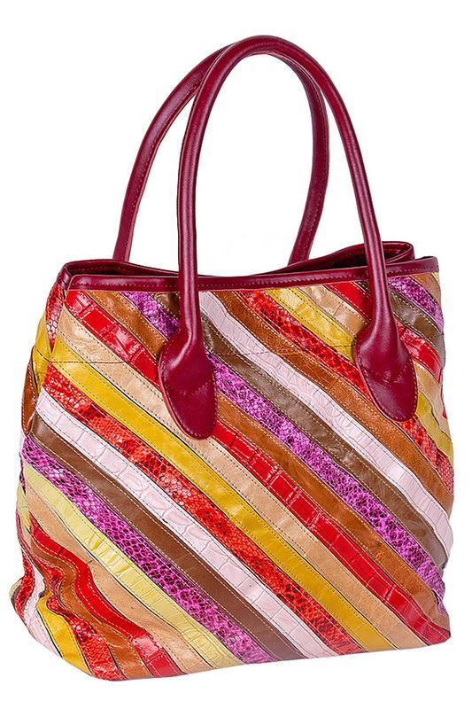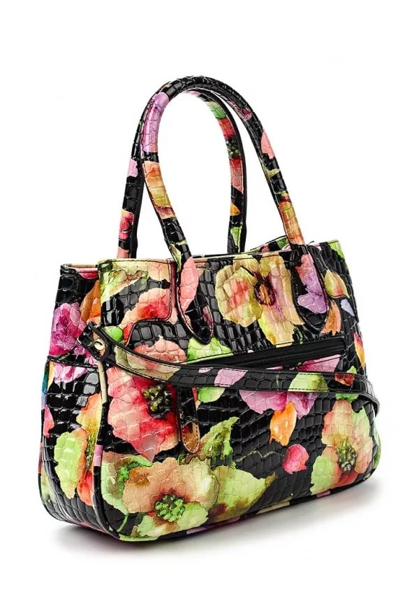 - Bags of large sizes - made of artificial leather with the addition of fabrics, raincoat fabric. Decorated with a variety of patterns, accessories, embroidery. In addition to the bag attached purse with the same design and made from the same materials.