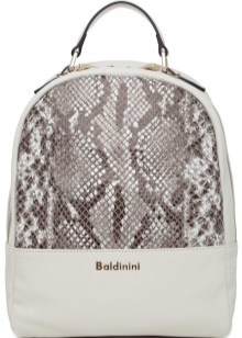 The stylish backpacks that Baldinini produces this season are also rapidly gaining momentum. The main color palette is presented in white, beige and black tones. It looks very gently white backpacks, trimmed with large beads and golden zippers.