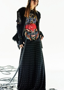 - stockings and lace-up blouses, silk tunics and rich drapery T-shirts decorated with rhinestones;