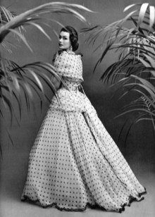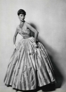 Immediately after the Second World War, in 1945, Pierre Balmain opened his own studio. Hungry for a chic life during the war and devastation, Paris gladly accepted the first collection of the master - refined dresses made of shiny fabric with a whalebone bodice, a heap of silk flying tulle and lace, sophisticated multilayered hand embroidery from glass beads, rhinestones, artificial stones and pearls. It was this couturier who brought into use the classic silhouette of an evening dress, subsequently monopolized Dior - the combination of an aspen waist with a full bell skirt.