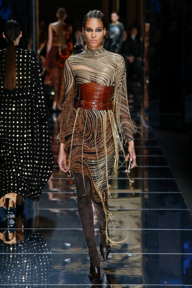 Today, Balmain women's and men's clothing can be described as Art Deco - the strict geometry of dresses and eclectic style. The 2017 spring-summer collection stood out for its unexpected lack of embroidery. The traditional for the brand redundancy of details manifested itself in the ingenious interweaving of the cutouts - although, compared with previous years, the designer reduced the rate for aggressive eroticism.