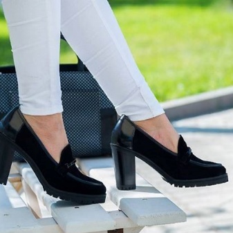 Combined shoes made of suede base and leather toe are no less sophisticated. In such models, the emphasis is the coloring of the material under the skin of reptiles. Sometimes a designer's idea represents a model without any inserts, but with interesting heel colors, such as striped or marbled. The combination of patent leather and matte marble heel looks unusual, but stylish.