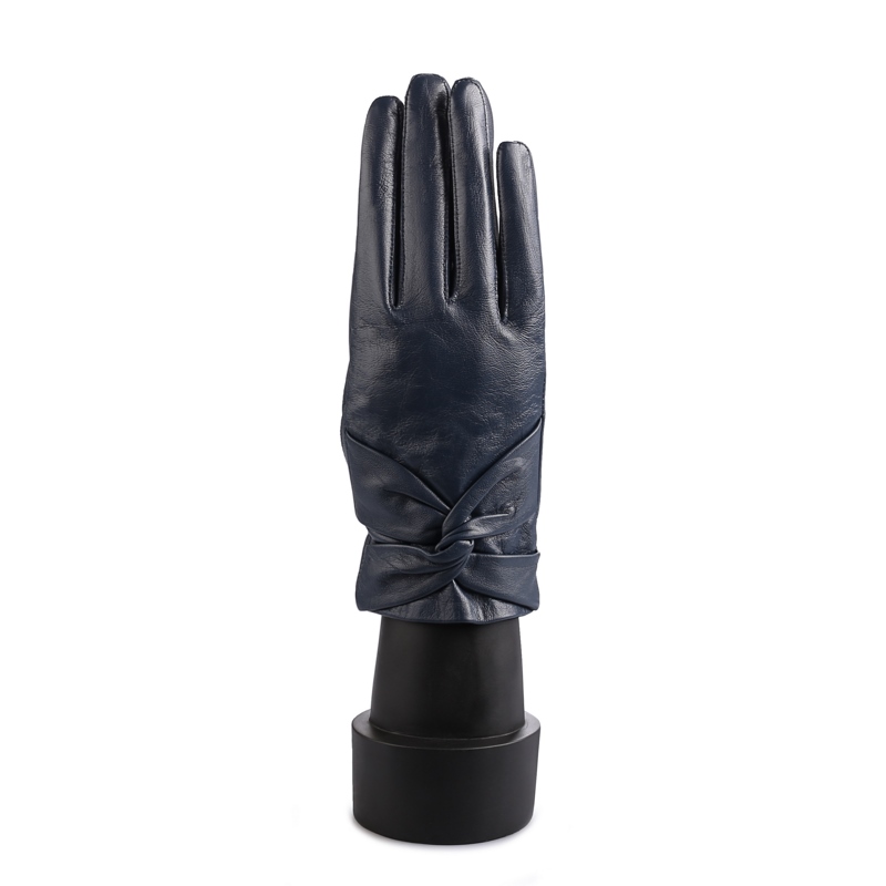 Women's gloves differ in length, style. Their color is mostly dark. Some models have a long sleeve, almost reaching the shoulders. Autumn styles can be made of perforated leather, while winter styles can be decorated with fur.