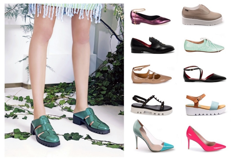 The color palette of shoes is very diverse. No collection can do without classical shades: black, white, gray and beige models are always in fashion. In addition to the classics, many products are made in pleasant muted coral, bronze, blue, brown, blue-gray, burgundy, and red shades.