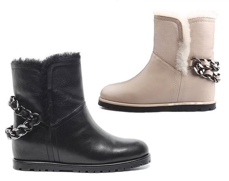 In addition to models in heels, the company manufactures products on the wedge and flat sole. They are no less attractive and are intended for those who prefer such shoes. Due to the optimum thickness of the sole, the feet do not freeze when cold. One of the interesting trends is the outsole with tractor tread: it is ideal for active movement in ice and looks extraordinary.